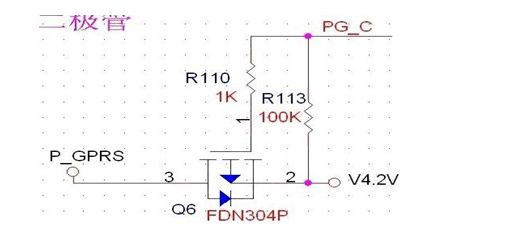 Looking at this circuit, the control signal PGC controls whether or not V4.2 supplies power to P_GPRS. This circuit, the source and drain terminals are not connected to the reverse, R110 and R113 exist in the sense that R110 control gate current is not too large, R113 control the gate of the normal, R113 pull-up to high, as of PMOS, but also can be seen as a pull-up on the control signal, when the MCU internal pins and pull-up, that is, the output of the open-drain when the output is open-drain, and can not drive the PMOS off, at this time, it is necessary to external voltage given pull-up, so resistor R113 plays two roles. It will need an external voltage to give the pull-up, so resistor R113 plays two roles. r110 can be smaller, to 100 ohms can also.