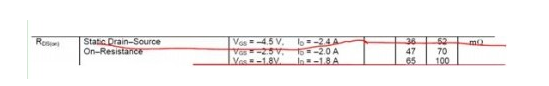 The second step is to select the current rating of the MOSFET. Depending on the circuit structure, this current rating should be the maximum current that the load can withstand under all circumstances. Similar to the case of voltage, the designer must ensure that the selected MOSFET can withstand this current rating, even when the system is generating spike currents. The two current cases considered are continuous mode and pulse spikes. This parameter is based on the FDN304P tube DATASHEET as a reference and the parameters are shown in the figure: